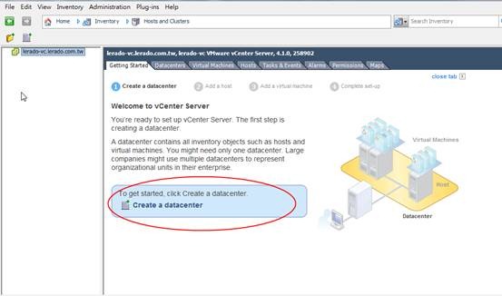 1. 利用vPhyere Client登入vCenter後,點選Create a Datacenter