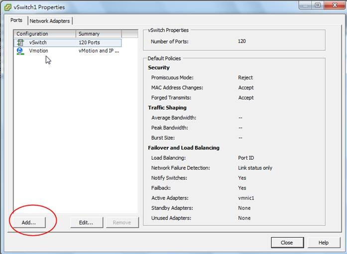 2. 可以看到剛剛設定好的 Vmotion,這裡請點選ADD