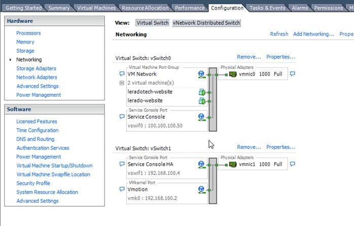 2. 點一下192.168.0.101後,按一下configration並點一下Networking,可以看到目前只有預設的一個Virtual Switch。